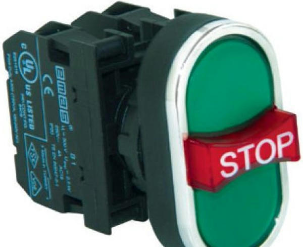 B121B30YY, Кнопка сдвоенная зеленая с функцией STOP 2НО/1НЗ