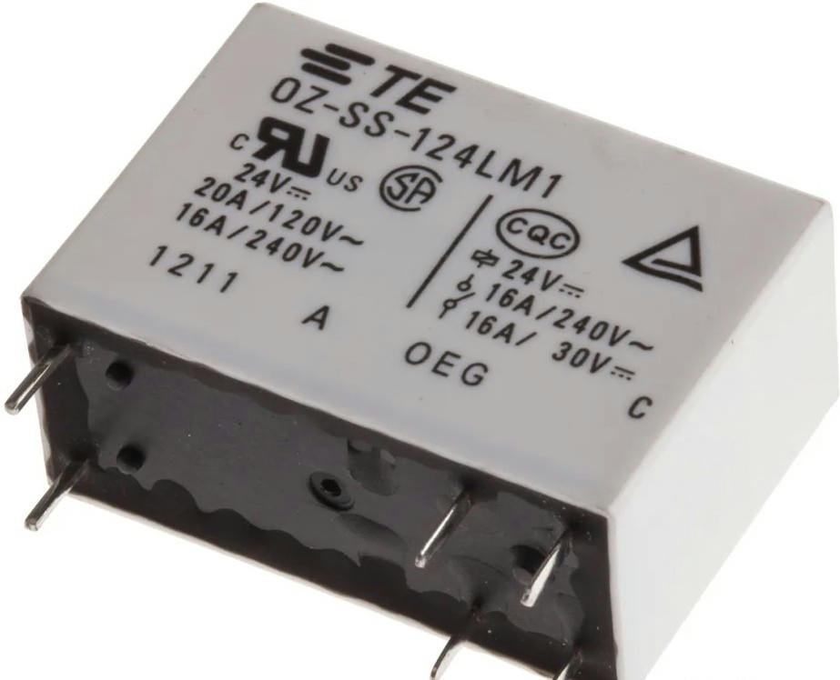 OZ series PCB mount power relays with a 16A current rating, flux proof sealing and class 105 (A) insulation.